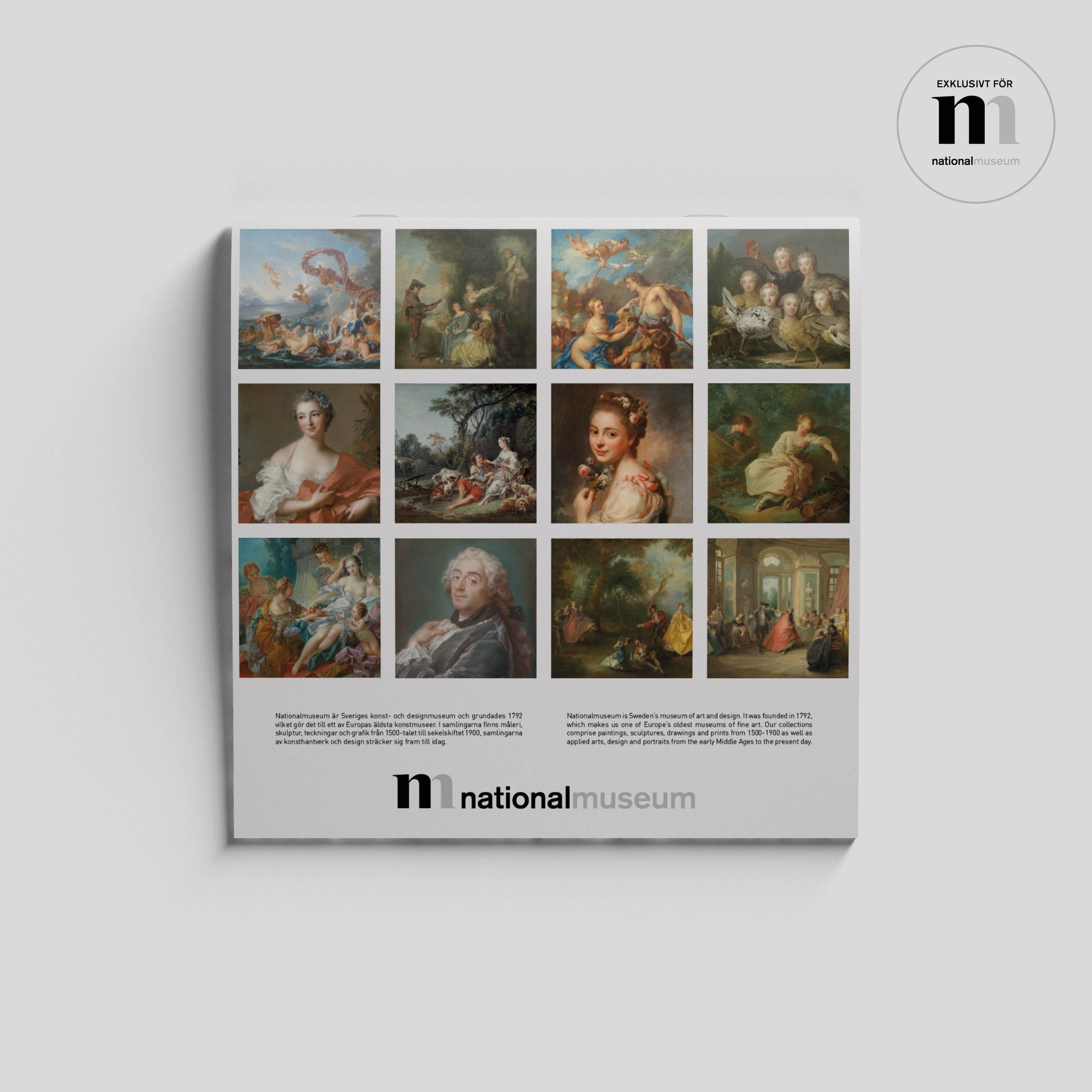 Håll reda på allt viktigt som händer 2026 med Nationalmuseums almanacka samtidigt som du njuter av 12 vackra målningar från museets samlingar av konst från Rokokon.