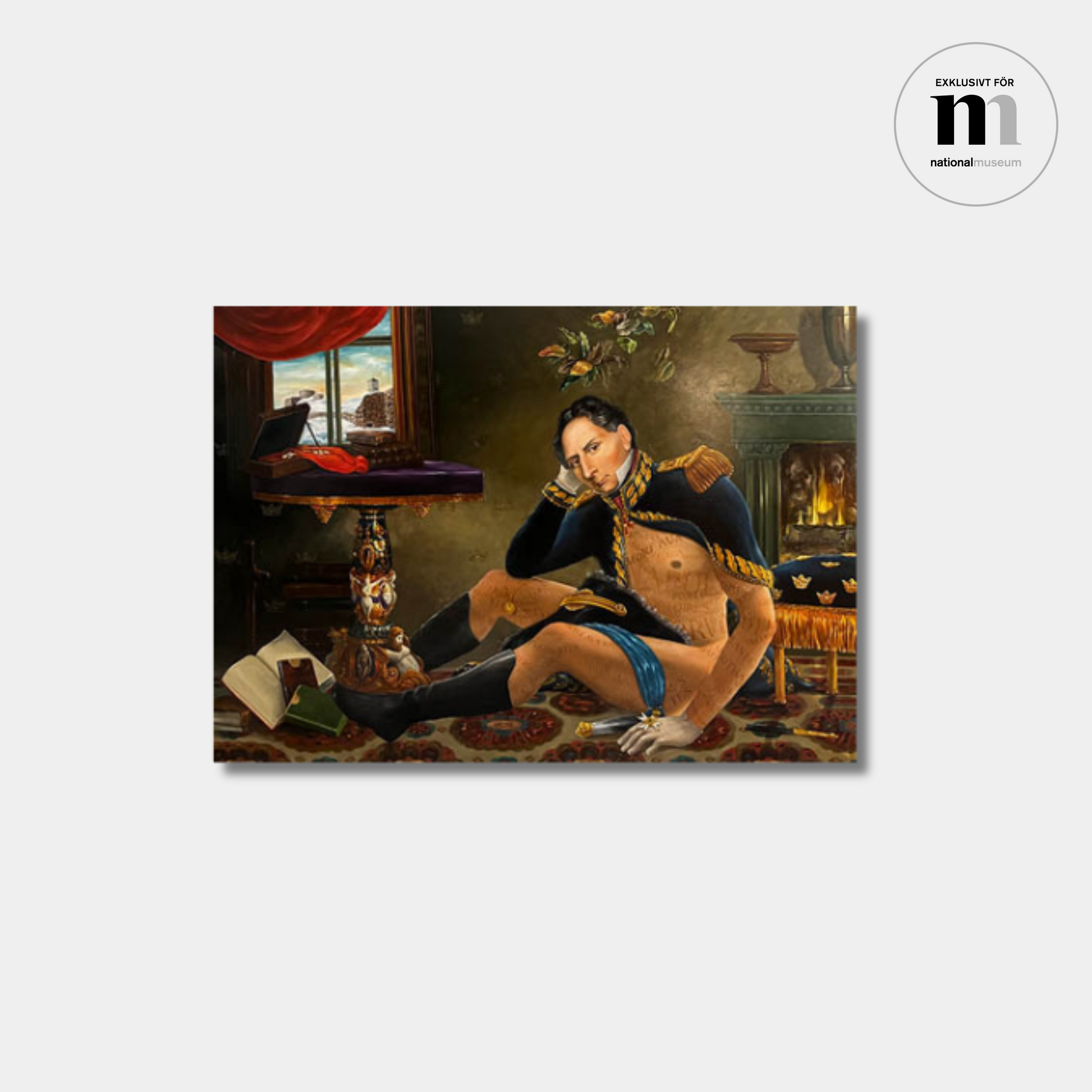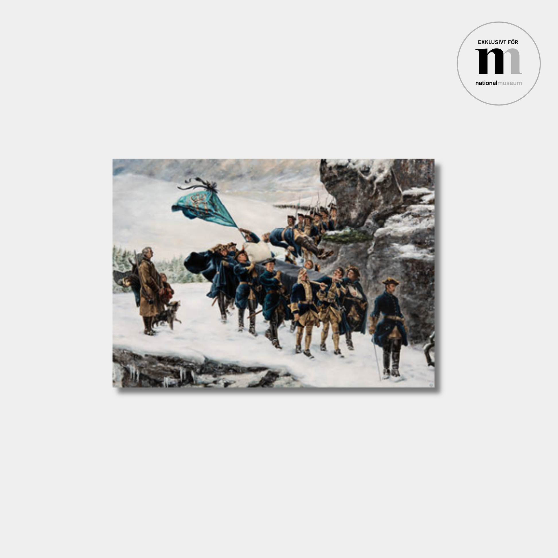 Vykorten föreställer Ernst Billgrens målningar Karl XII:s luftfärd och Från Sveaborg till Fredriksten som båda är inspirerade av äldre konst som finns i Nationalmuseums samlingar.